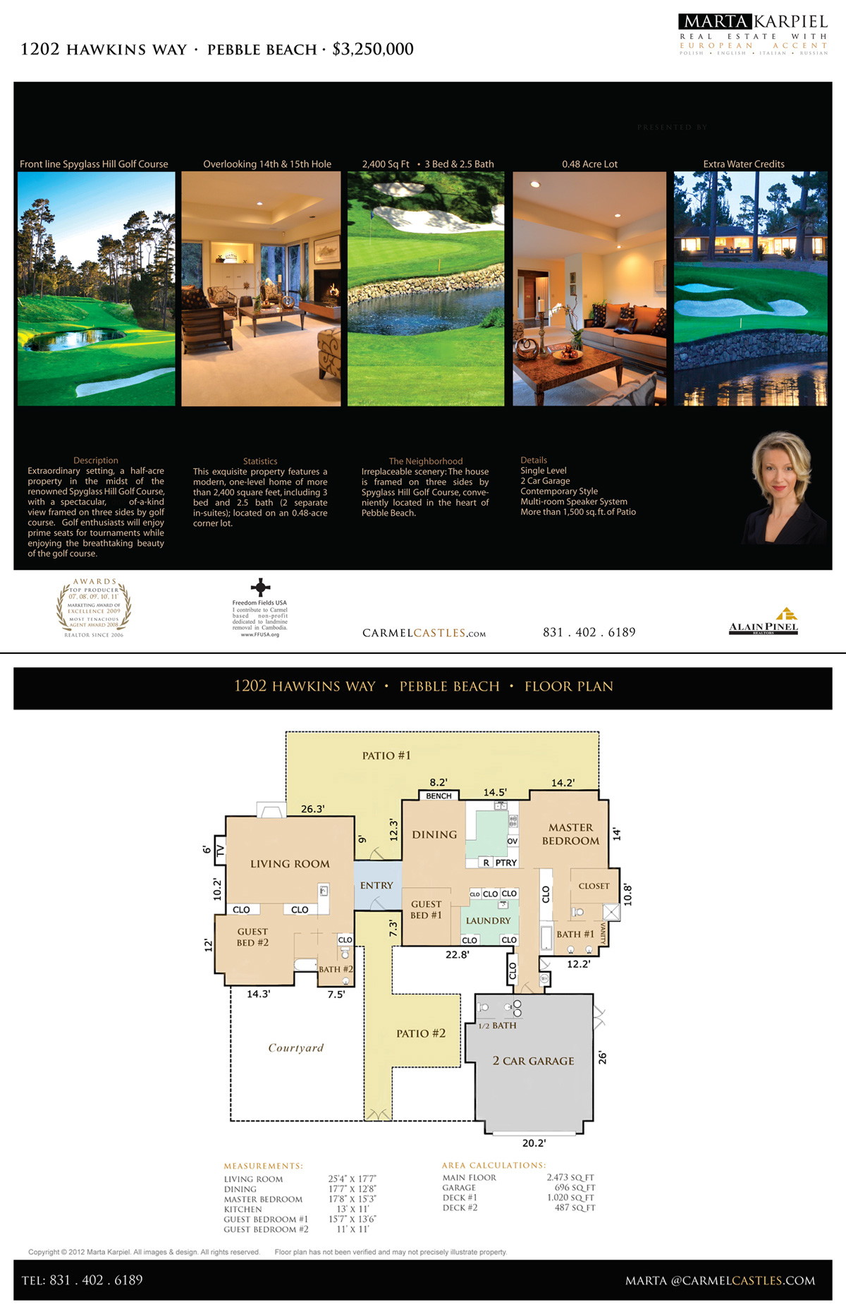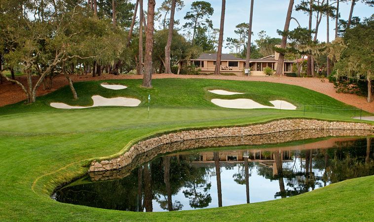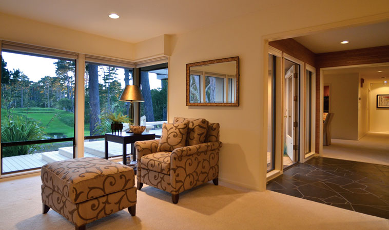Extraordinary setting — a half-acre property in the midst of the renowned Spyglass Hill Golf Course, with a spectacular, one-of-a-kind view framed on three sides by golf course — direct view of the 15th Hole and overlooking the 14th Hole and Pond — a treasured location featured in numerous golf publications. The carefully designed, contemporary-style home of 2,400 SqFt offers 3 bedrooms and 2.5 baths and is sited on a cul-de-sac surrounded by trees and greens. Golf enthusiasts will enjoy prime seats for tournaments while enjoying the breathtaking beauty of the golf course.