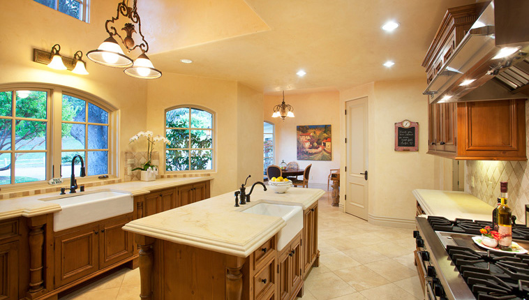 Château d'Quail — Hilltop estate in prestigious Quail Meadows with sophisticated qualities of European Heritage adapted to luxury living. Nestled on almost 4 acres, completed in 2005, 5560+ Sq Ft estate with guest house offers ultimate privacy with striking views of valley hills. Seamless blend of handcrafted stone archways, extended ceilings and complex slate facades will make you feel you are living in Europe.